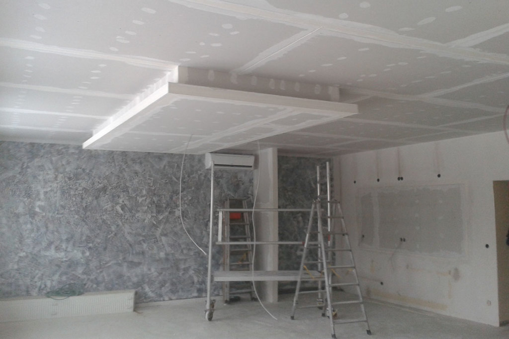 Trockenbaudecke mit Deckensegel im Bau