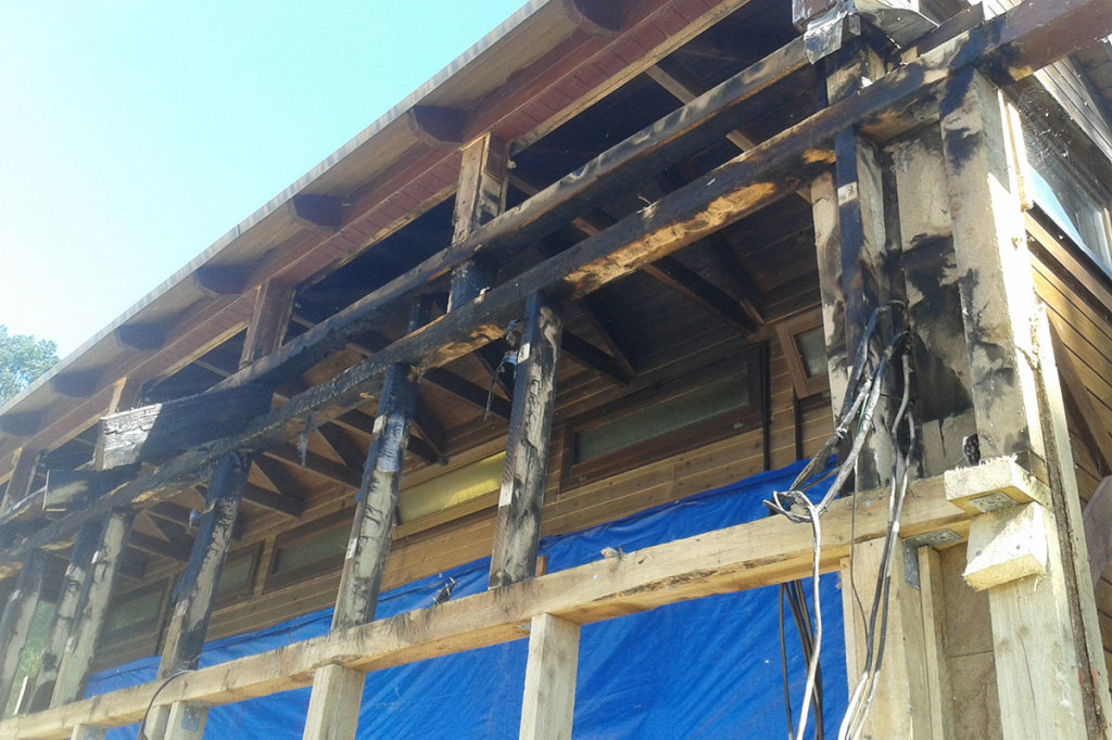 Servicegebäude in Lietzow, Brandschadensanierung Holzstäderbauweise